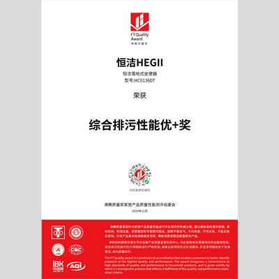 獎(jiǎng) 項(xiàng):綜合排污性能優(yōu)+獎(jiǎng)-恒潔落地式坐便器HC0136DT