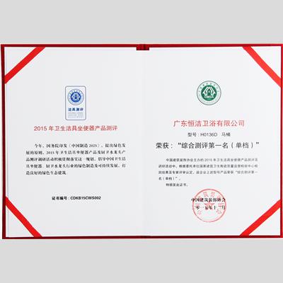 獎 項(xiàng):2015年衛(wèi)生潔具坐便器產(chǎn)品測評 綜合測評第一名(單檔)【H0136D】