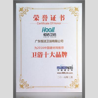 獎 項(xiàng):2016中國建材網(wǎng)推薦 衛(wèi)浴十大品牌