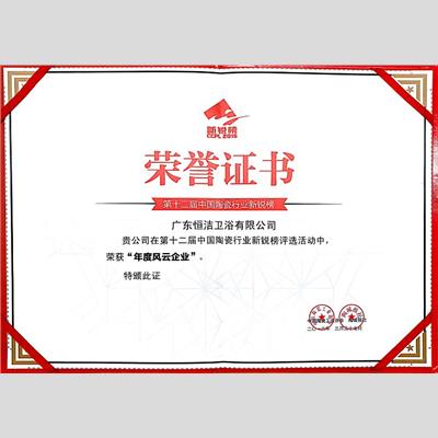 獎 項(xiàng):第十二屆中國陶瓷行業(yè)新銳榜-年度風(fēng)云企業(yè)