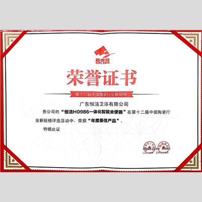 獎 項(xiàng):第十二屆中國陶瓷行業(yè)新銳榜-年度最佳產(chǎn)品(H0986)