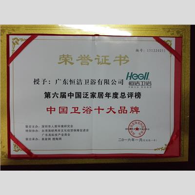 獎 項(xiàng):第六屆中國泛家居年度總評榜-中國衛(wèi)浴十大品牌