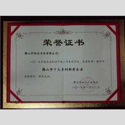 獎 項(xiàng):二〇一五年度佛山市十大專利新秀企業(yè)