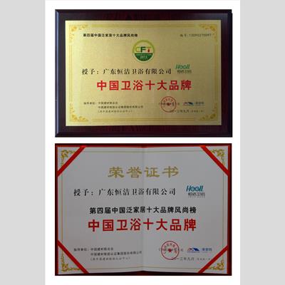 獎 項:第四屆中國泛家居十大品牌風尚榜-中國衛(wèi)浴十大品牌