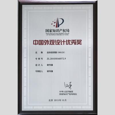 獎 項:中國外觀設計優(yōu)秀獎--連體座便器H0128(專利號 ZL201030160572.9 設計人:謝偉藩,專利權(quán)人:謝偉藩)