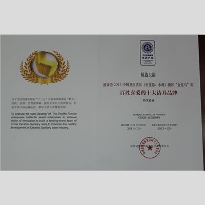 獎(jiǎng) 項(xiàng):百姓喜愛(ài)的十大潔具品牌