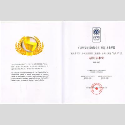 獎(jiǎng) 項(xiàng):H0118最佳節(jié)水獎(jiǎng)